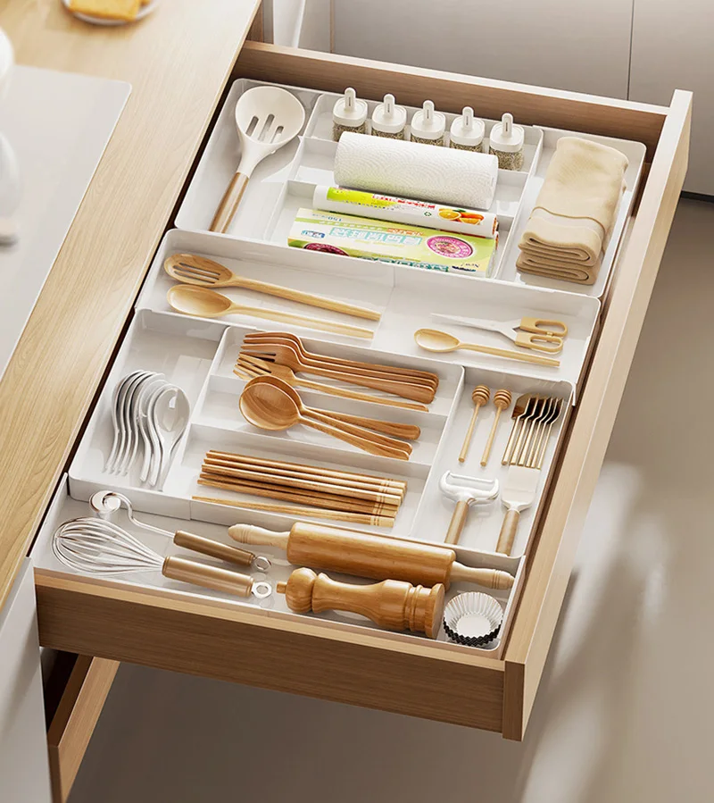 1.Smart Expandable System,Adjustable length fits most standard drawers.